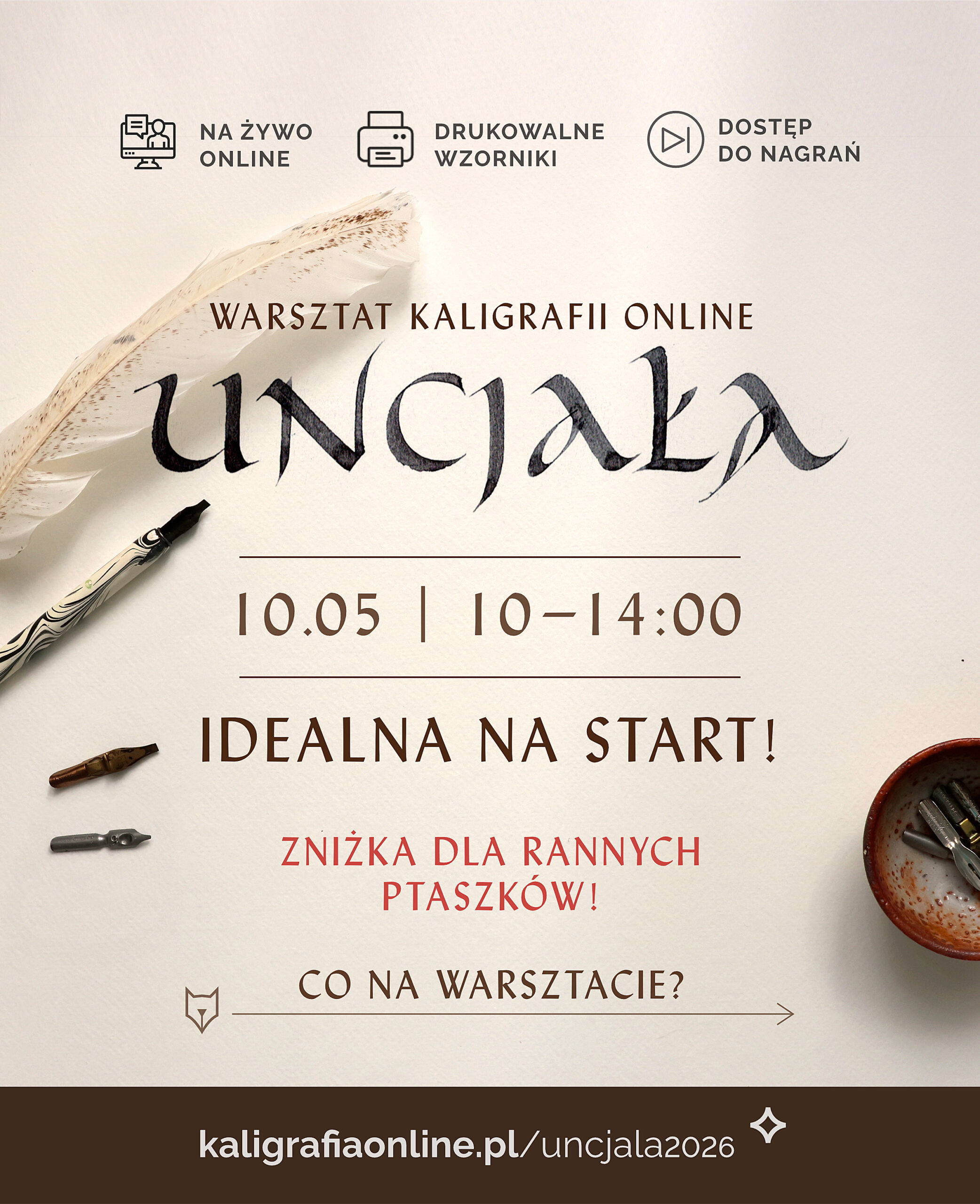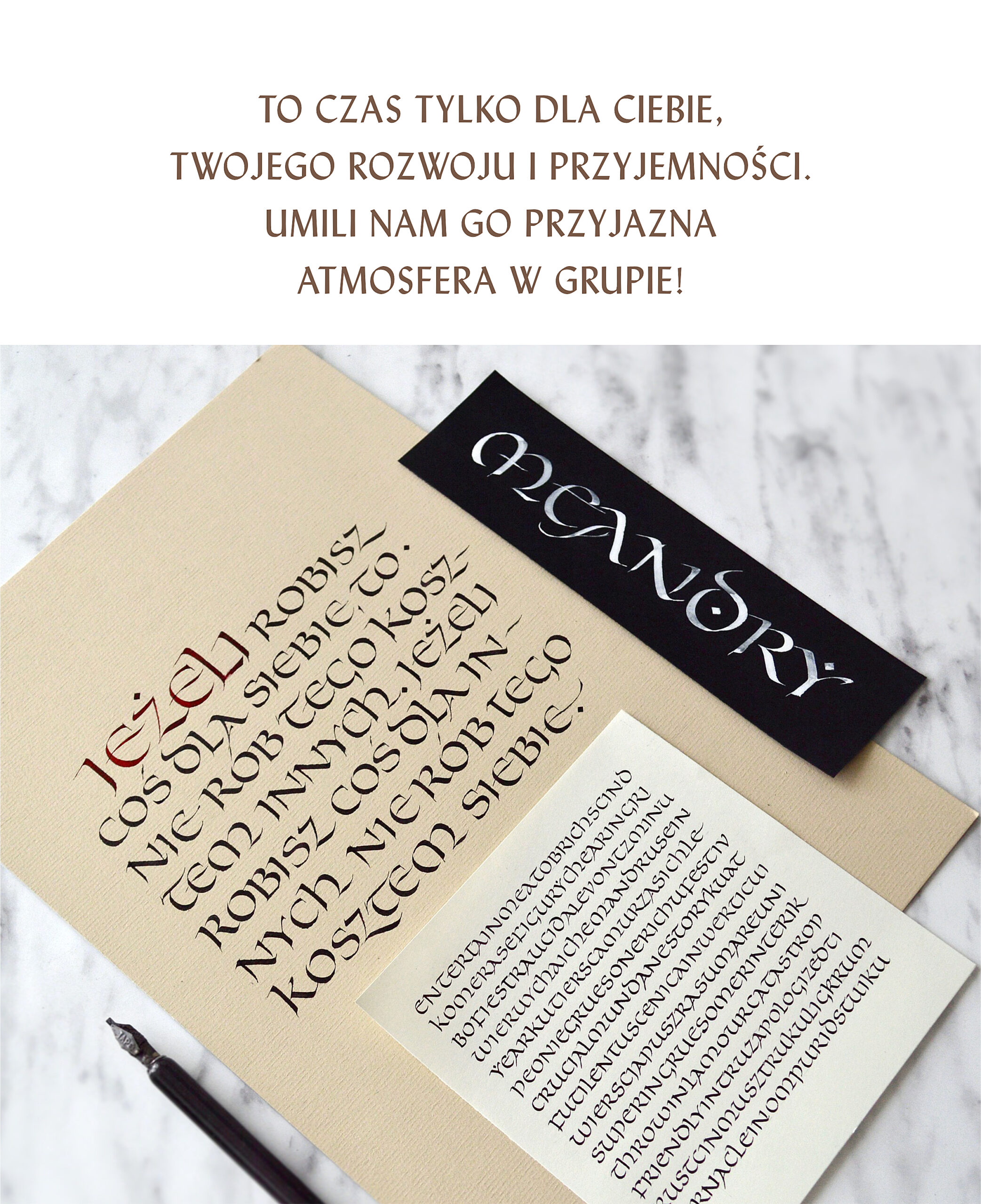 Przy zapisie dostaniesz informację o tym, co Ci się przyda – jaki mieć papier, obsadkę, stalówkę, tusz/atrament.